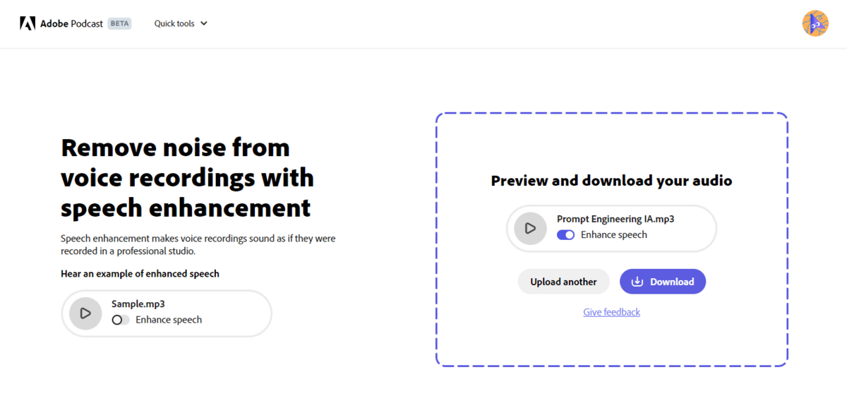Una vez grabado el guion, lo que hice fue usar la app abierta de Adobe para mejorar la calidad del audio, está cool esta herramienta porque no tienes que registrarte y es gratis.