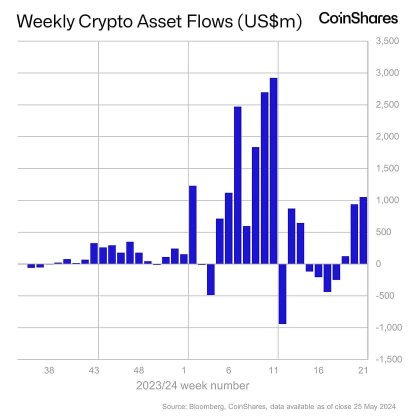 Bitcoin sigue siendo el rey, con entradas de 1.010 millones de dólares👑